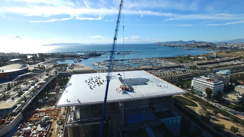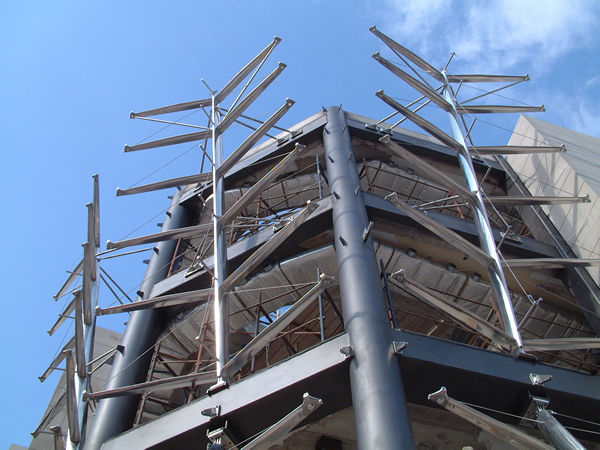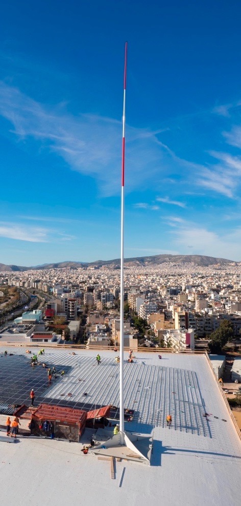 Fabrication of a flexible one piece 40 meter long glass prepeg spire with a base diameter 400 mm, apex diameter 75 mm, which flexes according to the force of the wind. The spire was made for a project by Renzo Piano and is located in the Stavros Niarcohos Foundation Cultural Center in Athens.