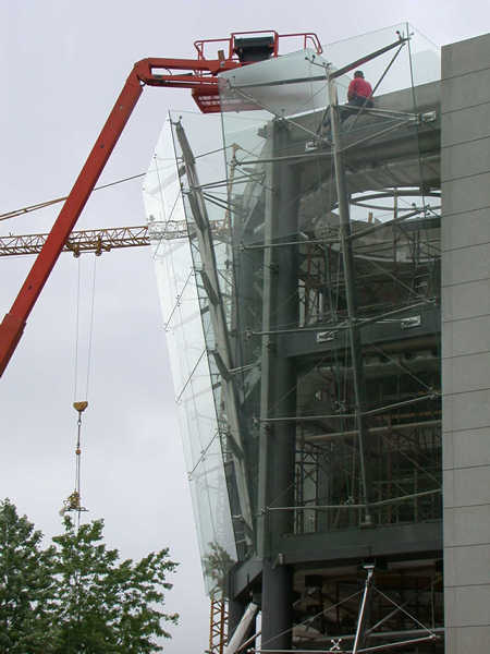 Fabrication of a flexible one piece 32 meter long glass prepeg mast which flexes according to the force of the wind. The spire was made for a project by Renzo Piano for the Krause Gateway Center located in downtown Des Moines.