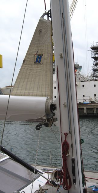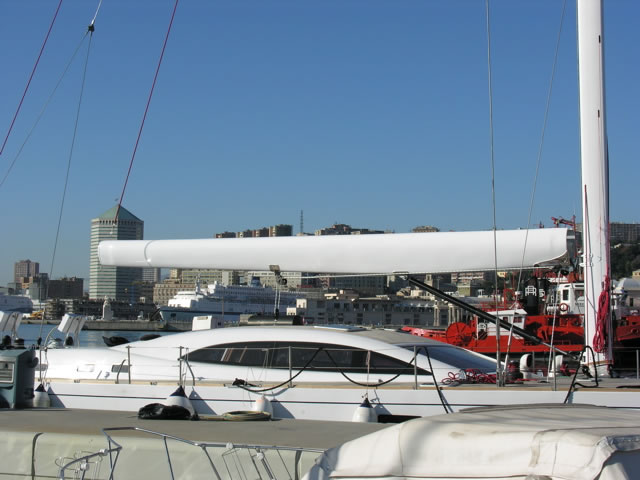 The mainsail furling system allows even very large sails to be quickly and easily furled and unfurled even with a reduced crew on board. For example a sail with dimensions p=30m and e=10m can be furled in under 2 minutes.