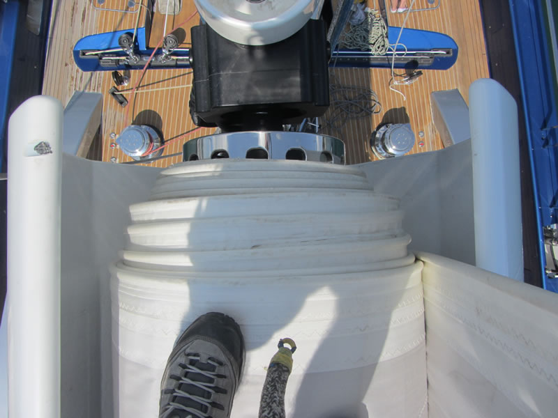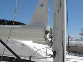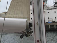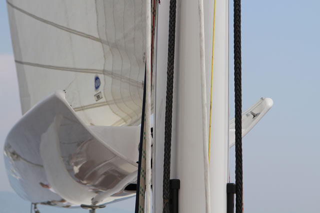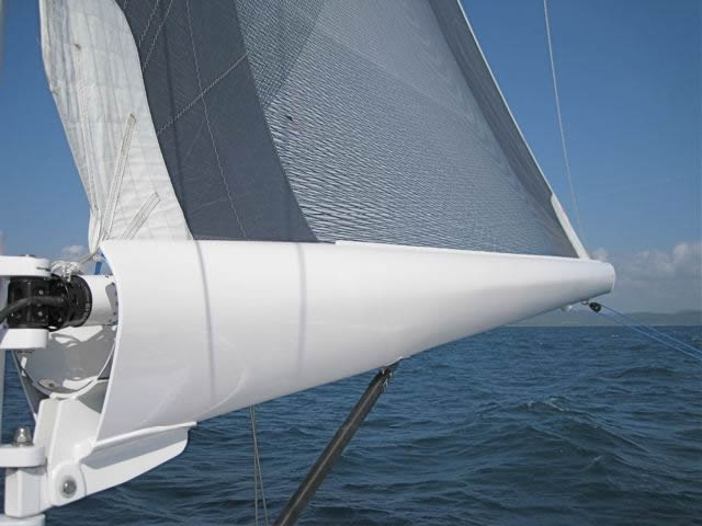 A furling boom allows the mainsail to be furled onto a rolling bar inside the boom rapidly reducing the sail area using a hydraulic or electric motor.