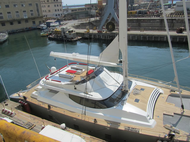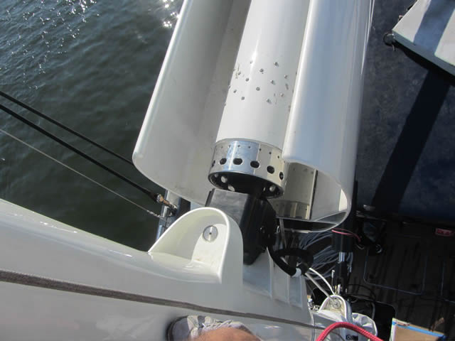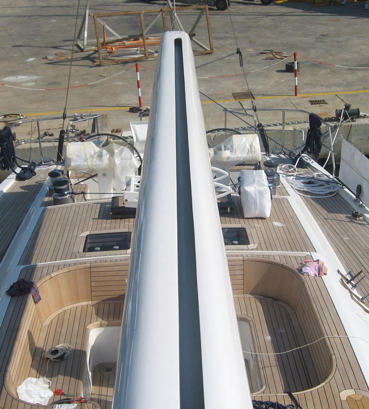 The following photos show an example installation, on yacht Giannetti Star 64, on a Park Avenue boom later converted into a furling boom.