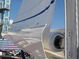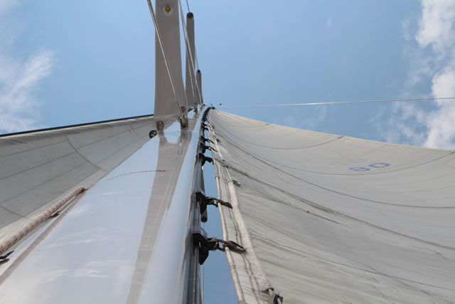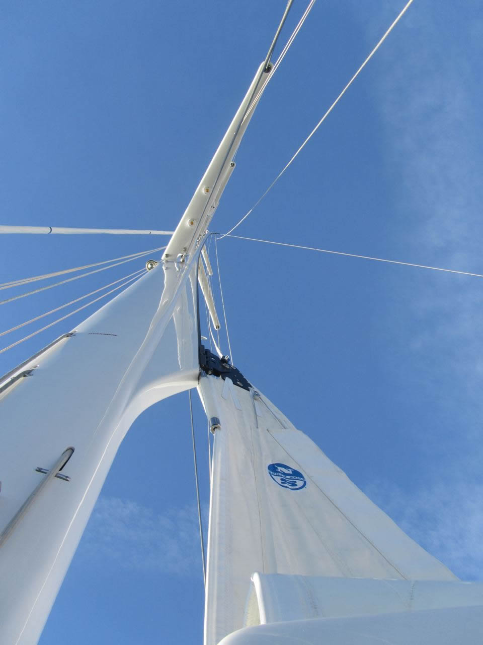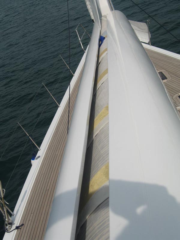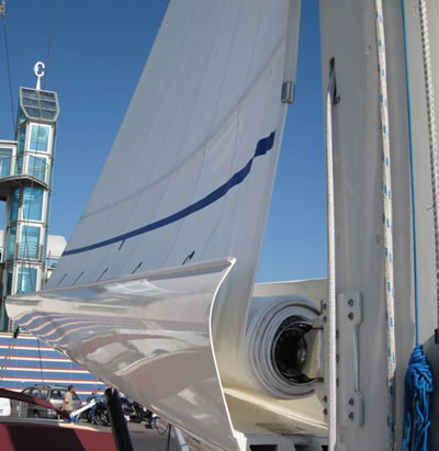 The mainsail while not in use, being furled inside the boom, is completely protected from the effects of the sun.