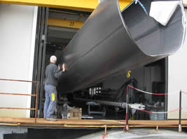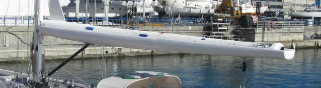 The furling boom is made from preimpregnated carbon cured as a single piece in a vacuum oven (see photo). This allows us to obtain a pice with reduced weight and maximum rigidity.