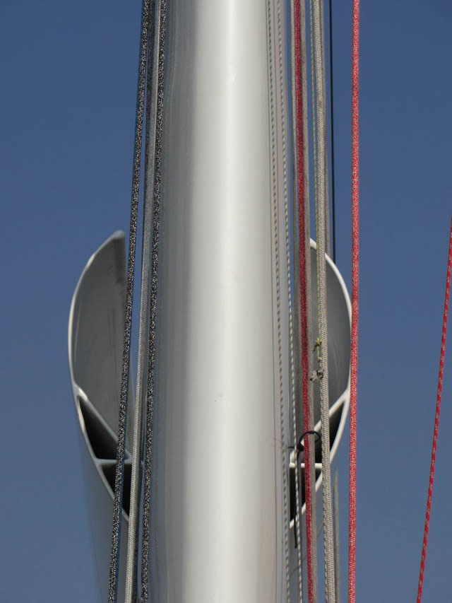 Inside the boom there is a tube connected to a winding motor which allows the height of the mainsail to be modified in any position allowing for an optimum use of the relationship between the sail area and sideslip.