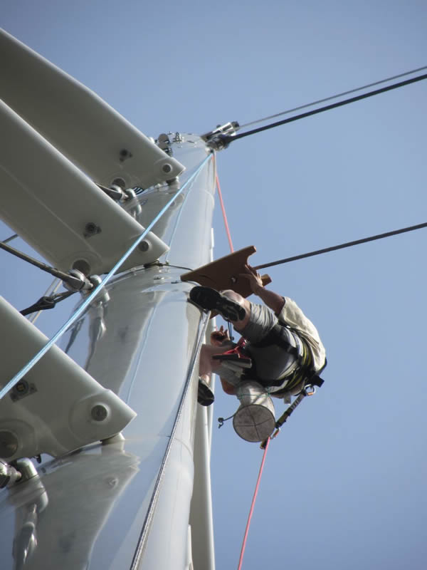An observational but nonetheless effective test is to observe carbon masts made using the various techniques as they are lifted by a crane before being fitted. The rigidity of each type of mast can be seen with the clear advantages of masts using our system becoming obvious.