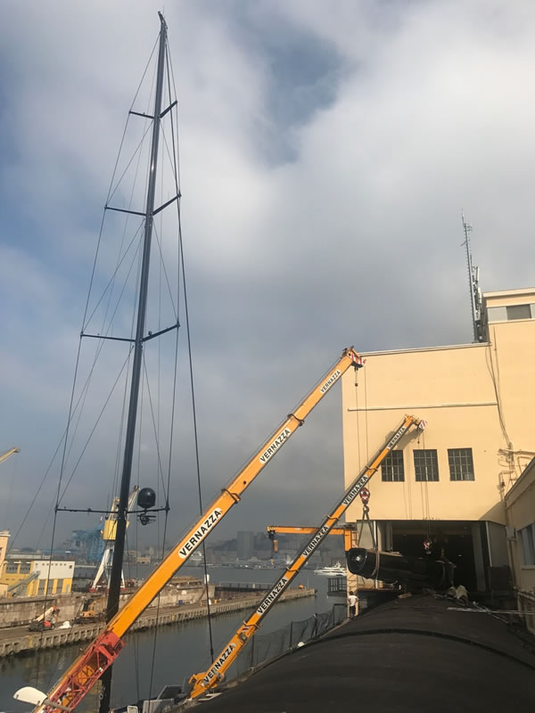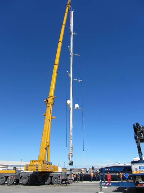 Today we can safely say that the problem of extracting the alluminium mandrel from the carbon profile of large masts (sections over 150 and weight over 6000 Kg). We are able to produce masts in one picece with a section of 1200x600mm and length 65m.
