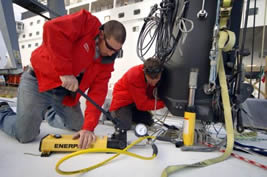 The maximum load to apply to the piston must not exceed 20% of the maximum load that can be applied to the rigging and should be specified for each vessel by the manufacturer.