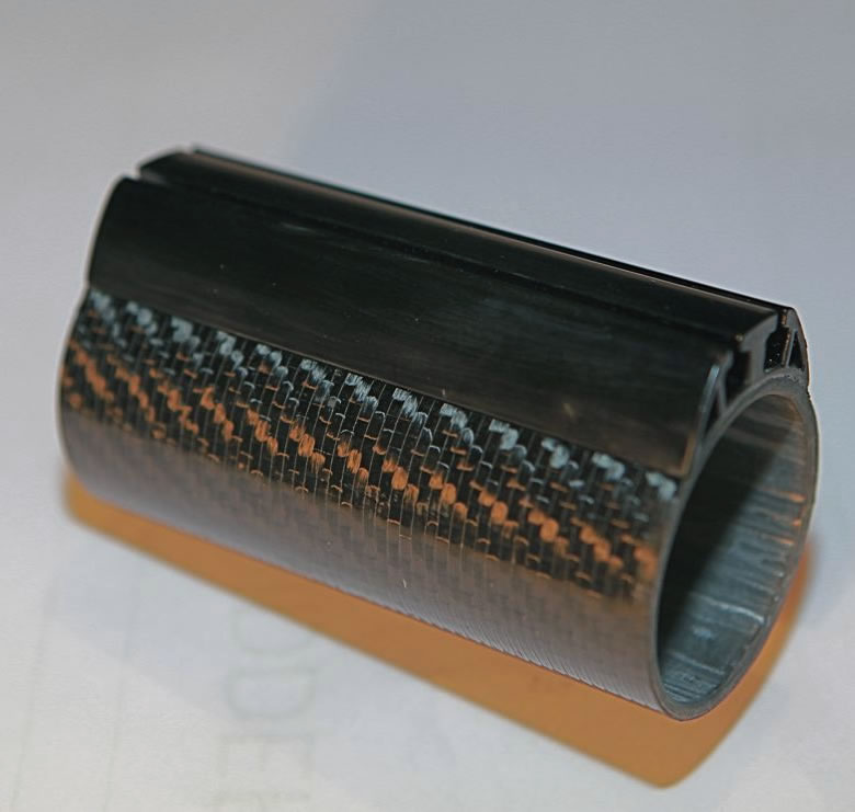 The carbon profile ø50mm 2,5mm thick with a twin groove in aluminium. The per meter weight is 996 grammes.