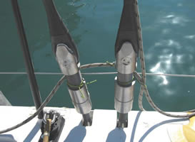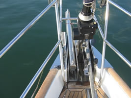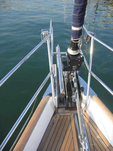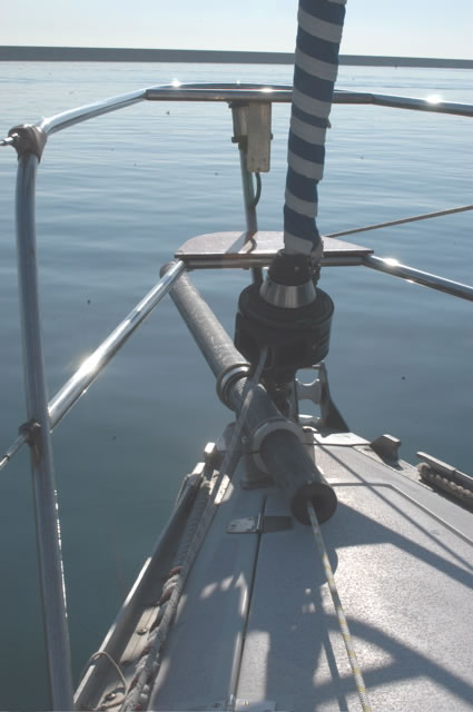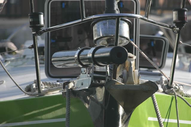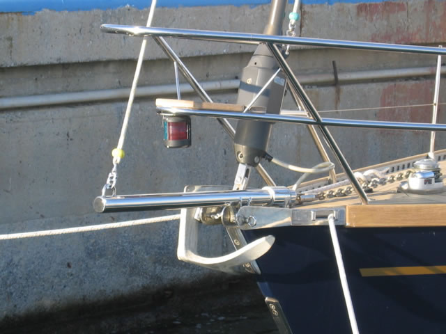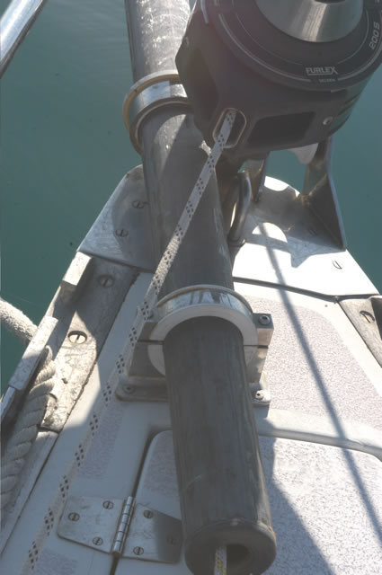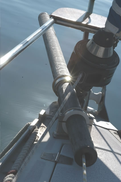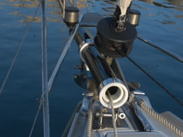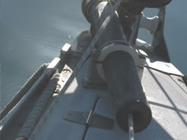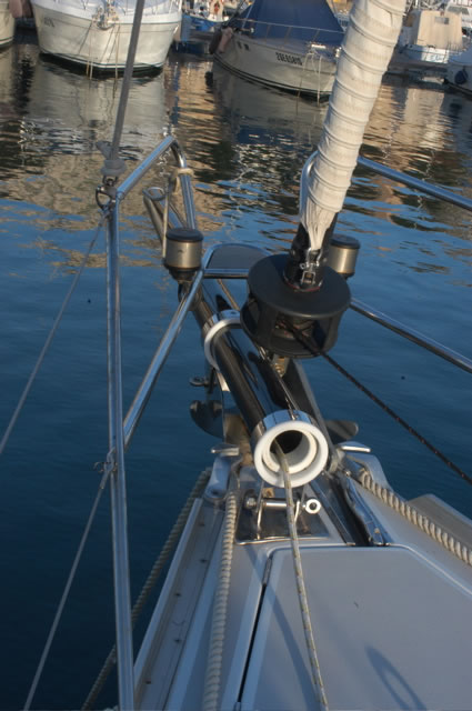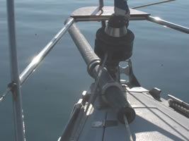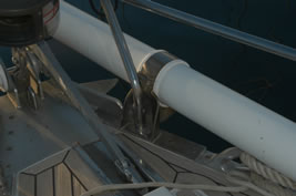 In order to locate the ideal locations for fitting the bowsprit support rings on the bow roller it is necessary to have the bowsprit on board and try various positions.